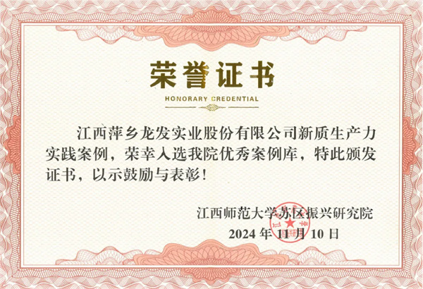 龍發(fā)實(shí)業(yè)新質(zhì)生產(chǎn)力實(shí)踐案例榮幸入選江西師范大學(xué)蘇區振興研究院優(yōu)秀案例庫2024/11/11