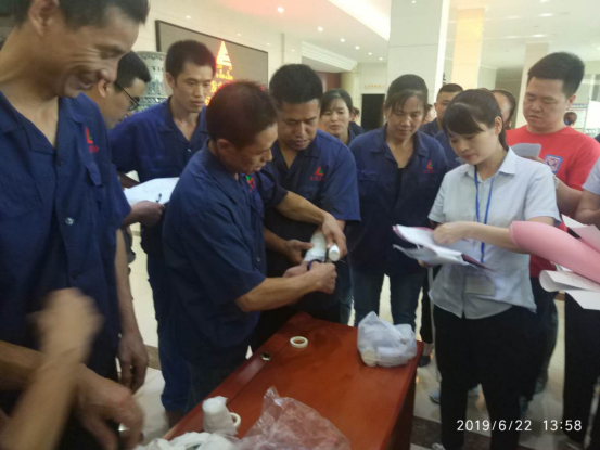 此次比賽除了必答、搶答和風(fēng)險題等環(huán)節,還專(zhuān)門(mén)增設了針對實(shí)際安全實(shí)操技能,如包扎、滅火器的使用、消防栓消防水帶的使用以及系安全帶等?,F場(chǎng)職工熱情高漲積極參與,通過(guò)激烈的角逐,成品倉代表隊奪得一名;公司機關(guān)代表隊奪得二名;制泥車(chē)間代表隊奪得三名。搪球車(chē)間代表隊以?xún)?yōu)異積極的表現獲得評委組和觀(guān)眾的認同,獲得本次競賽的“組織獎勵”。