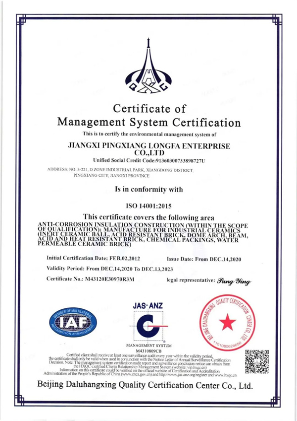 江西萍鄉龍發(fā)實(shí)業(yè)股份有限公司創(chuàng )建于2001年,注冊資金1.06億元,占地面積400畝,是“江西省萍鄉市工業(yè)陶瓷行業(yè)商會(huì )”會(huì )長(cháng)單位。經(jīng)過(guò)近二十年的持續健康發(fā)展,公司已成為集工業(yè)陶瓷生產(chǎn)、防腐保溫工程施工、環(huán)保設備制作與安裝于一體的大型股份制企...